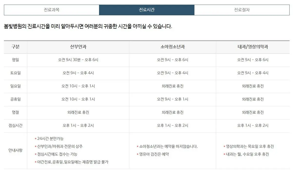 - 봄빛 병원 진료시간